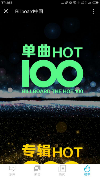 全球音乐榜单、创新趋势及行业的风向标Billboard、 Billboard中国唯一官方小程序、提供最新的音乐榜单、资讯、采访等节目内容。