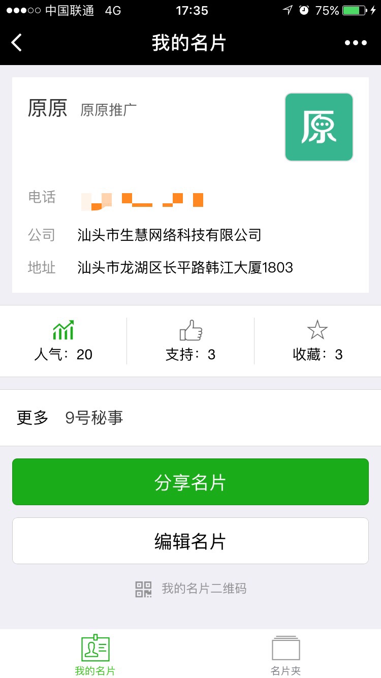 原原名片是一款轻便的电子名片管理工具,能帮您快速创建微信电子名片,与好友、群友快速交换名片。