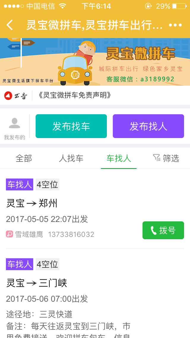 灵宝微生活旗下的拼车服务平台,方便大家共享出行资源,绿色出行