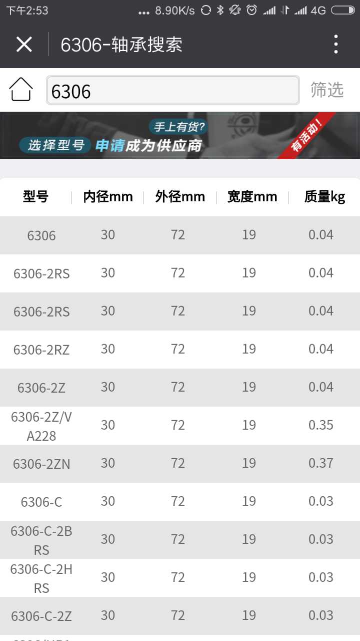 轴承搜索,快速查询轴承型号和供应商