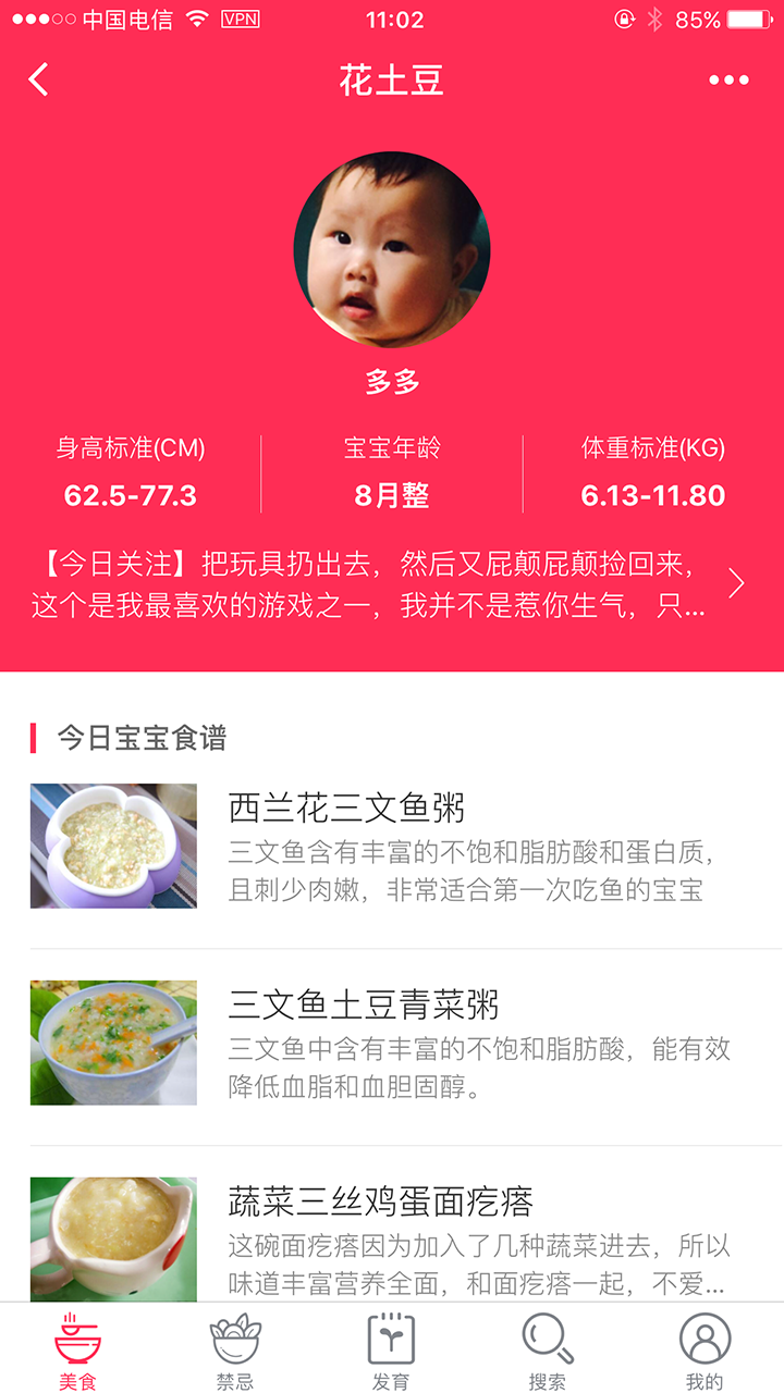根据宝宝发育特点,为您甄选营养食谱,结合喂养方案和喂养禁忌,让您的宝宝健康快乐成长。
