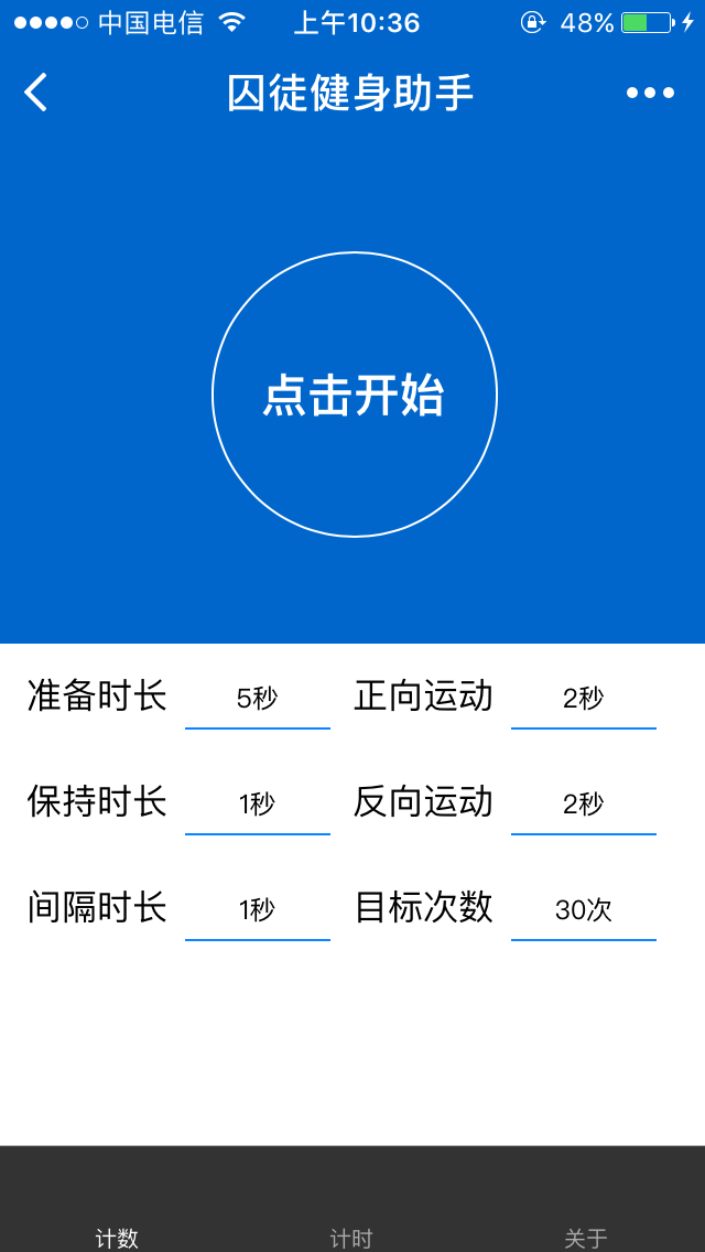 囚徒健身辅助训练工具,包含计数器和计时器功能,帮助训练者更好的把握训练节奏和程度