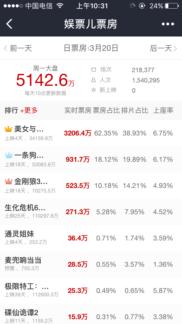娱票儿专业版票房分析小程序,透过数据看电影!