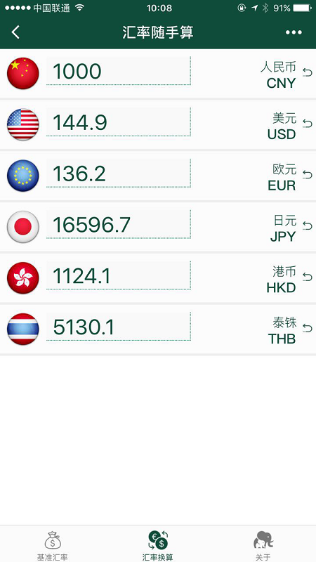 随时随地查询各国汇率,随时换算任意两种货币的兑换。