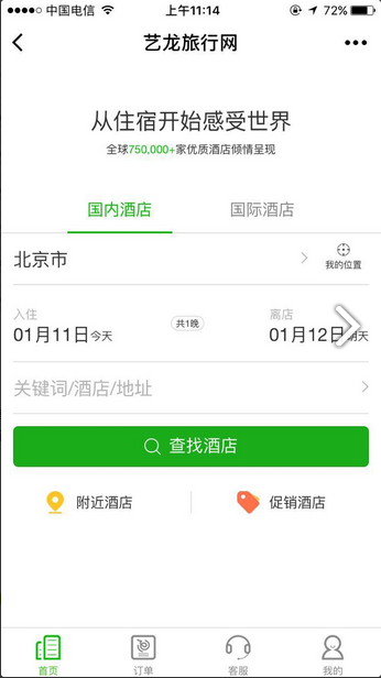 艺龙旅行网为消费者提供全球200多个国家75万家酒店住宿及机票、火车票等预定服务;是中国在线和移动住宿服务提供商,致力于打造专注专业、物超所值、智能便捷的住宿预订平台,通过艺龙客户端、PC网站、24小时预订热线(4009-333-333),更多详情请登录艺龙官网www.elong.com!