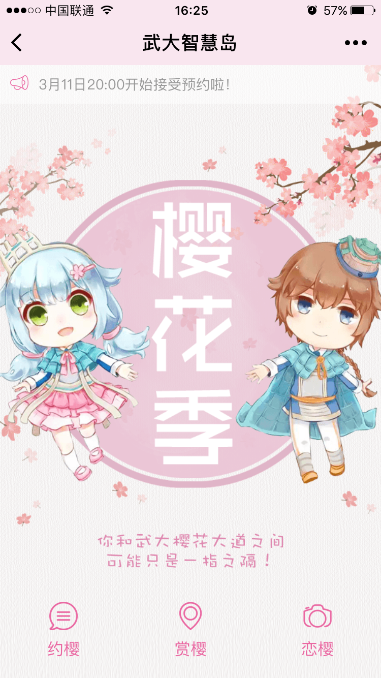 武汉大学官方小程序“武大智慧岛”。来武大赏樱,有这一个导游就够了。