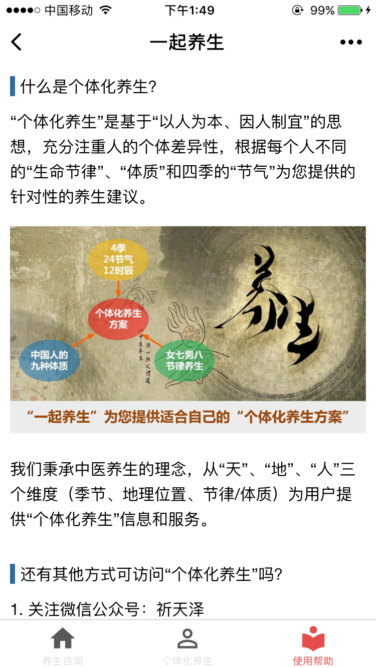 基于个人节律、体质并结合当前季节、节气为用户提供针对性的个体化养生信息。