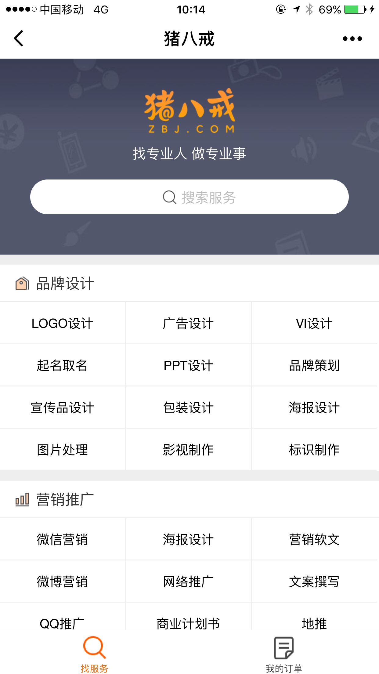 猪八戒网是全国领先的服务交易平台,服务涵盖品牌创意、产品/制造、软件开发、企业管理、企业营销、个人生活六大类别,共计600余种现代服务,为创业者提供一站式的企业全生命周期服务。