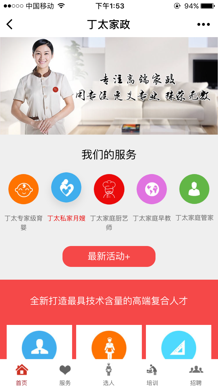 丁太专家级育婴、丁太私家月嫂、丁太家庭厨艺师、丁太家庭早教、丁太家庭管家 给全社会家庭提供完善的服务和系统的家庭劳务解决方案