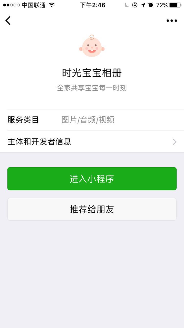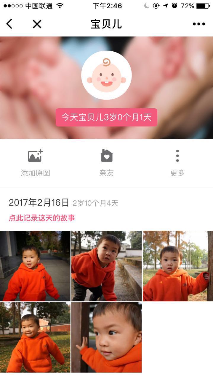 时光宝宝相册,和家人一起记录宝宝的成长 在小程序“时光宝宝相册”中,你可以随时分享宝宝的照片,相册中其他家庭成员可以第一时间查看最新动态,并且支持记录宝宝每张照片后的故事~再也不用担心错过孩子的每一刻。