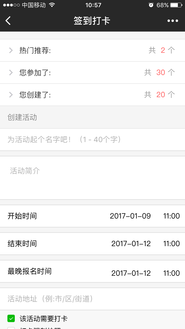 为活动发起人提供创建、管理、组织签到打卡活动的工具