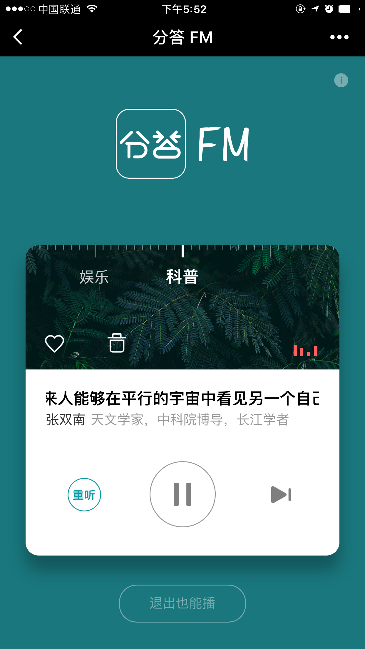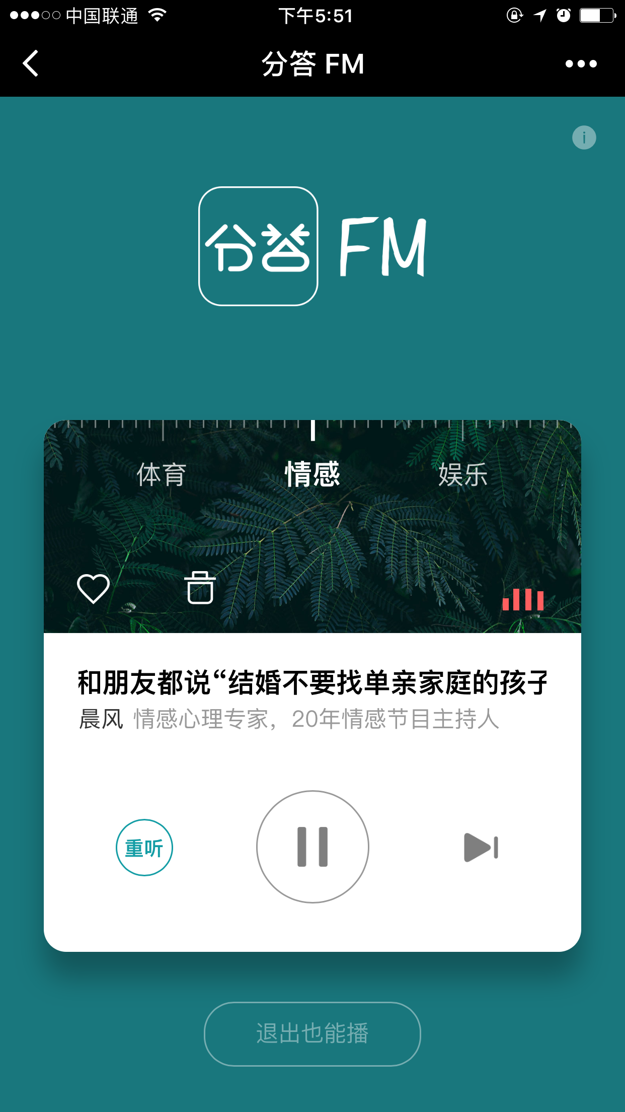 分答FM是「分答」官方出品的每日精选分答合集,读给你听,完全免费。