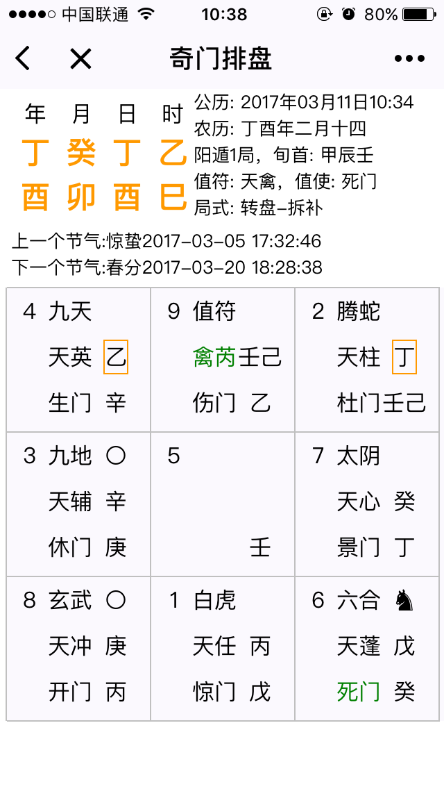 时家奇门遁甲排盘,包含常见的转盘、飞盘,以及起局方法包括:拆补、置润、茅山和手工选局,操作方便,更多功能后续会继续更新。