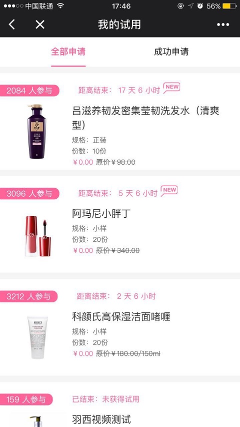 最新大牌化妆品免费试用平台。挑选感兴趣的产品,参与申请就有机会获得。参与试用告诉我们你们的口碑评价,赢取更多试用资格。