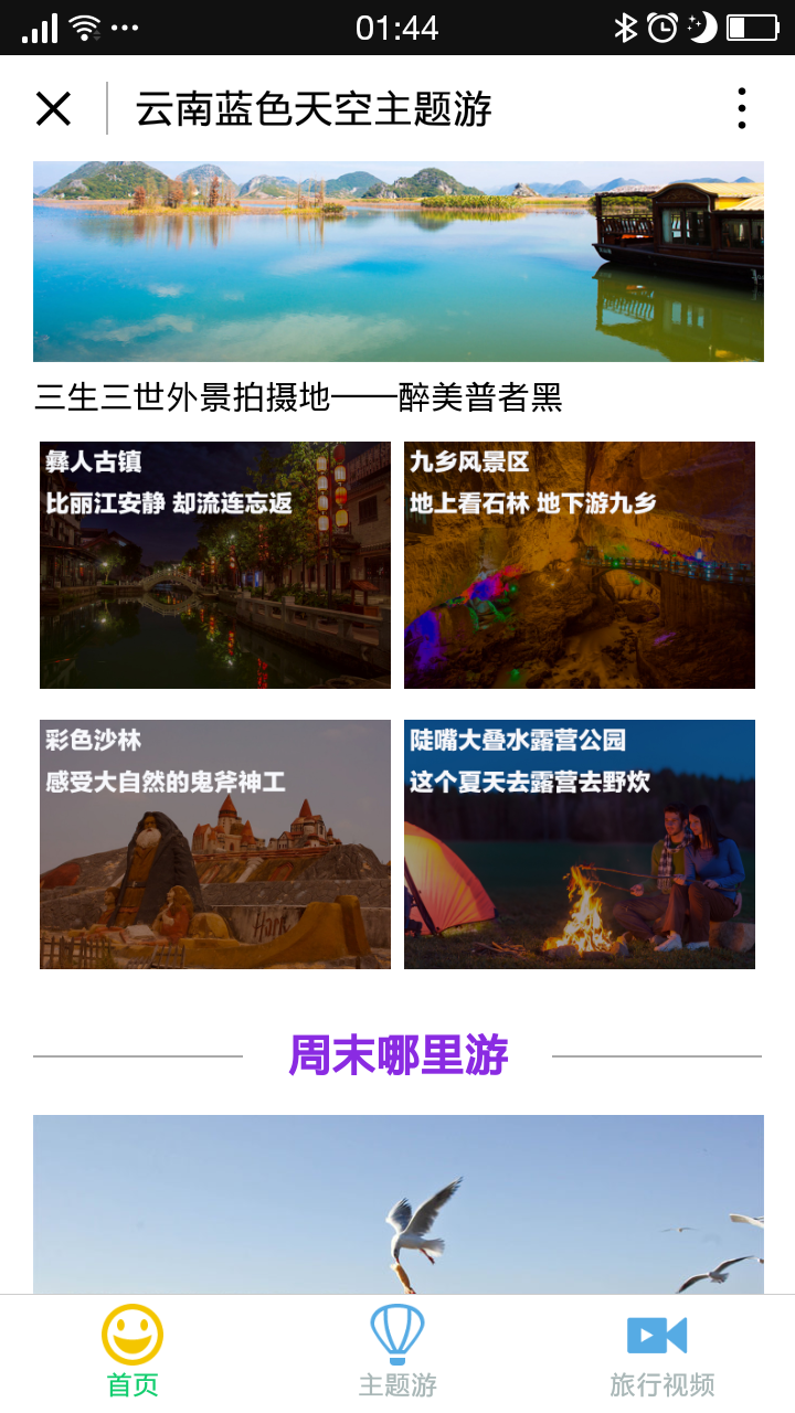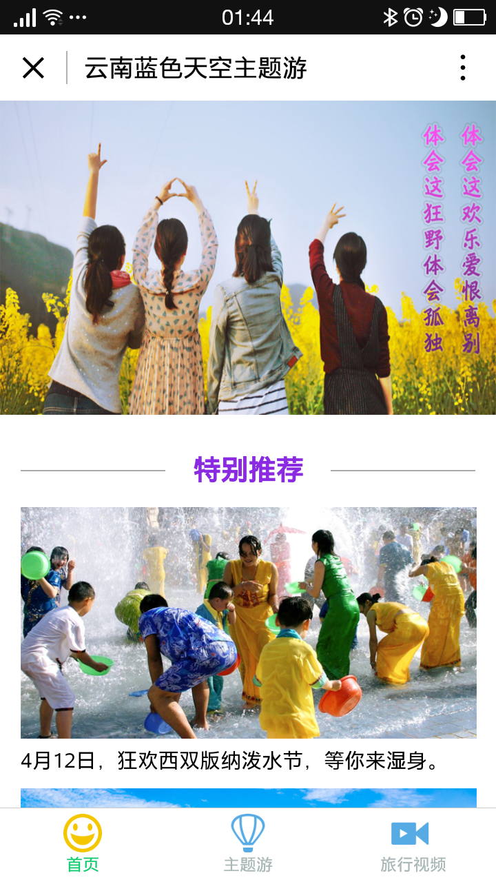 主打云南旅游,无任何商业广告,以主题游和短视频的方式让用户使用,让用户在最短的时间,以最快的速度找到最满意的景点。