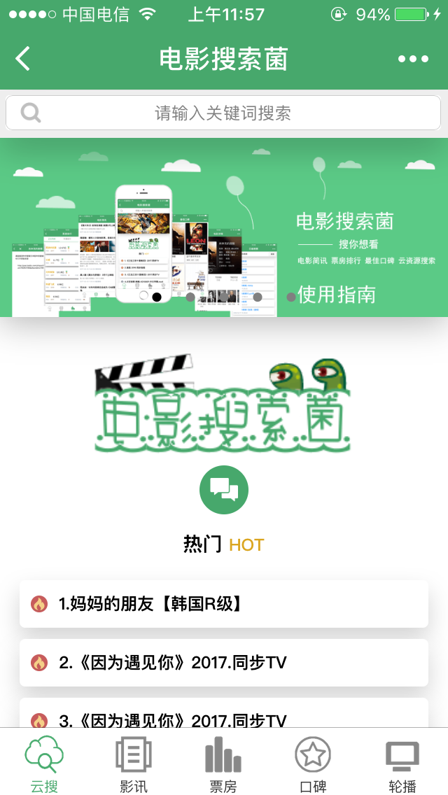 电影简讯、票房排行、最佳口碑、电视直播和云资源搜索,实时动态、搜你想看
