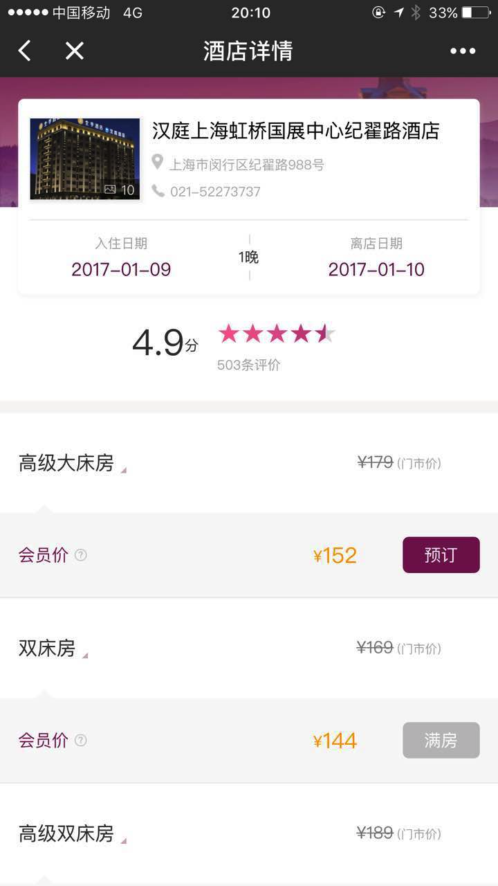 华住酒店官方小程序,提供在线预订及咨询服务。