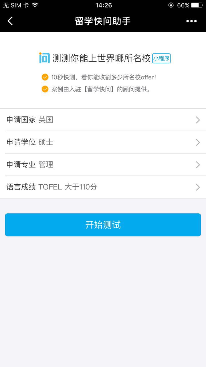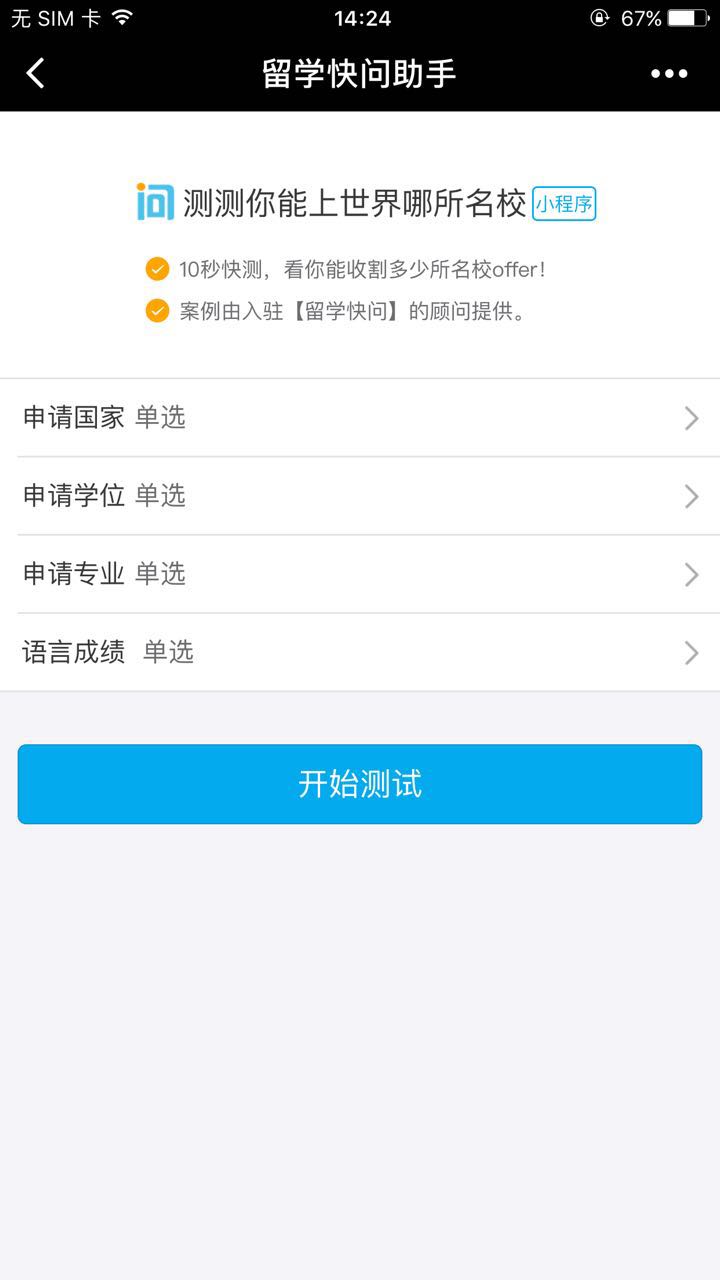 留学快问助手由中立第三方平台留学快问团度开发,只要输入相关成绩,学校及专业背景已经申请国家和专业,就可以帮你选校定位。