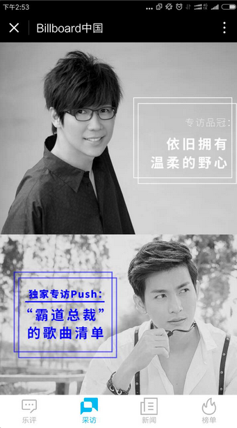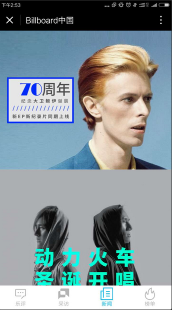 全球音乐榜单、创新趋势及行业的风向标Billboard、 Billboard中国唯一官方小程序、提供最新的音乐榜单、资讯、采访等节目内容。