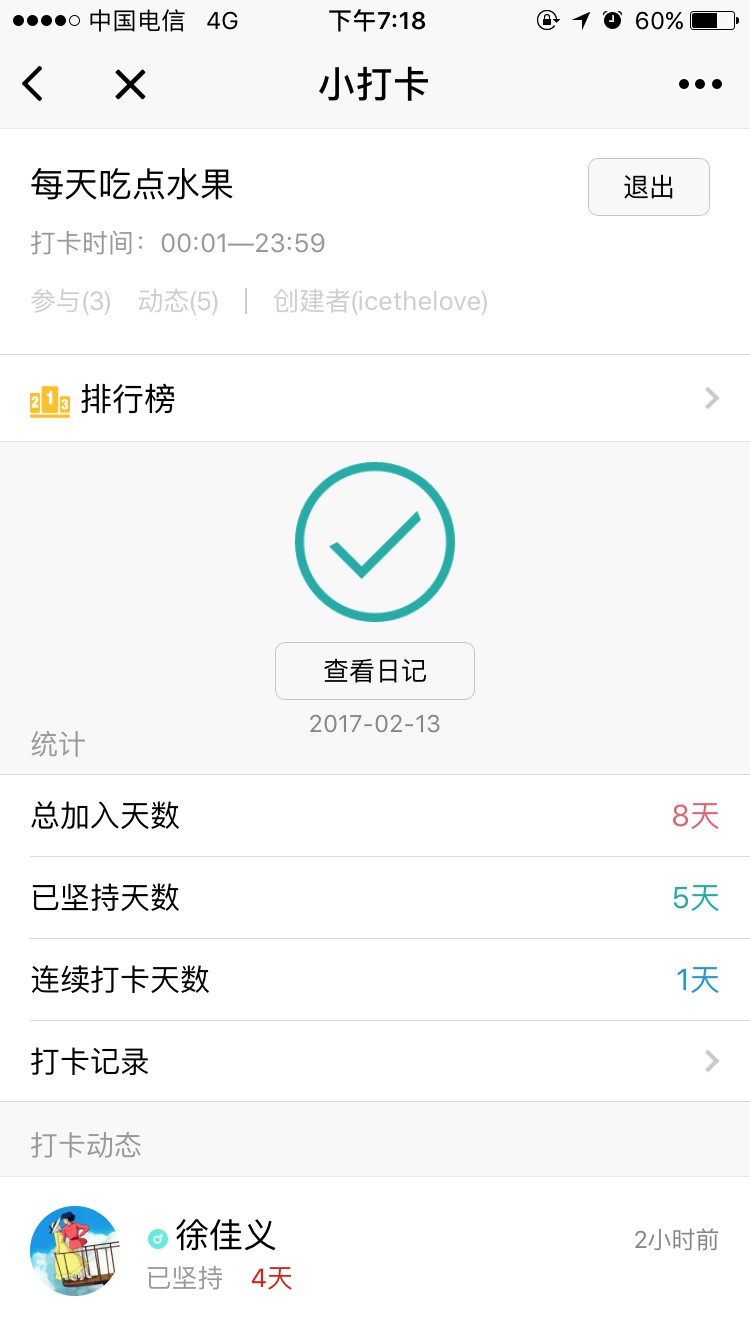 每日早起、健身、阅读等打卡,养成好习惯!支持个人/组队打卡、分享邀请群友打卡、数据统计、排行榜、拍照定位发布打卡日记、点赞群友打卡动态等功能!
