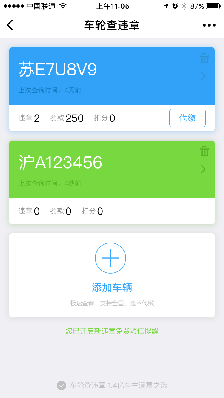 为车主提供违章查询、违章代缴服务的小程序,支持全国,支持新能源车牌,支持违章监控图查看,快速准确,1.4亿车主的满意之选。