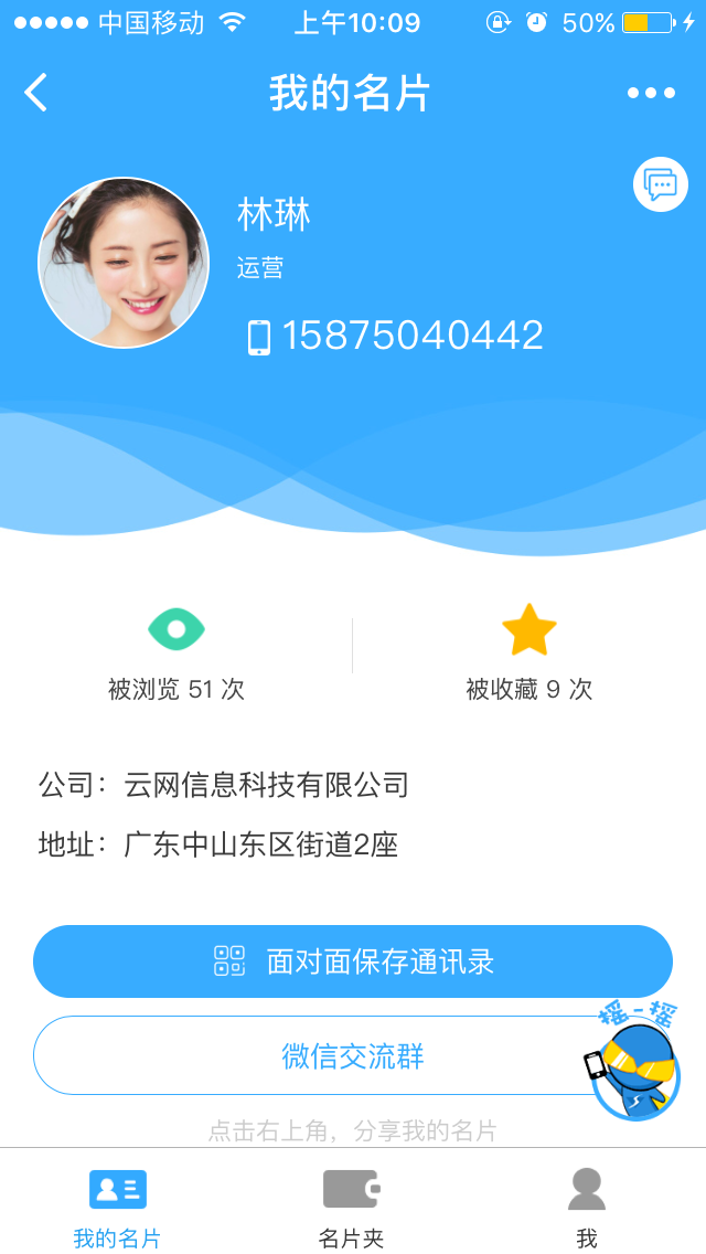 嗖卡名片,是基于微信小程序的电子微信名片,名片信息云端管理,实时更新、所有好友即时同步。只需扫一扫嗖卡名片二维码,即可将您的名片资料保存到手机通讯录。同时,您可把名片分享到微信好友,微信群,让您的名片传播更高速、有效。有嗖卡名片,无须携带大量纸质名片,方便环保。更高效地管理您的人脉资源。