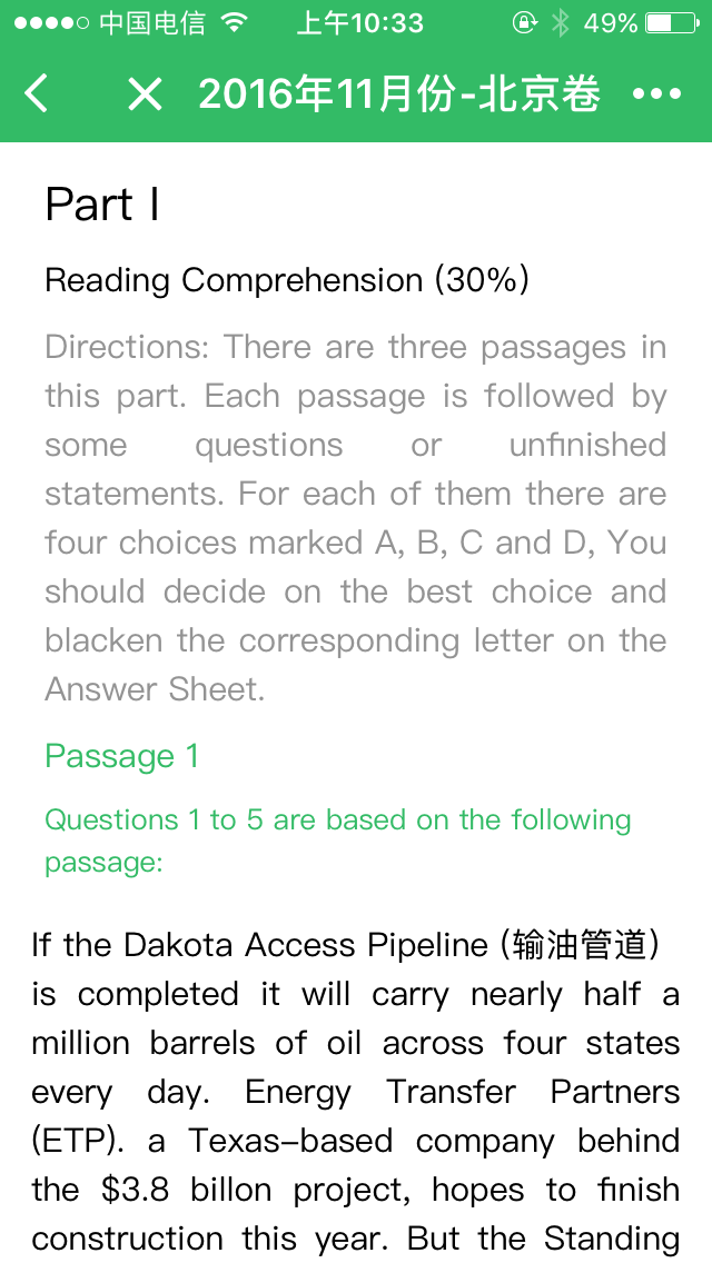 本程序提供国家成人教育学士学位英语考试历年真题练习
