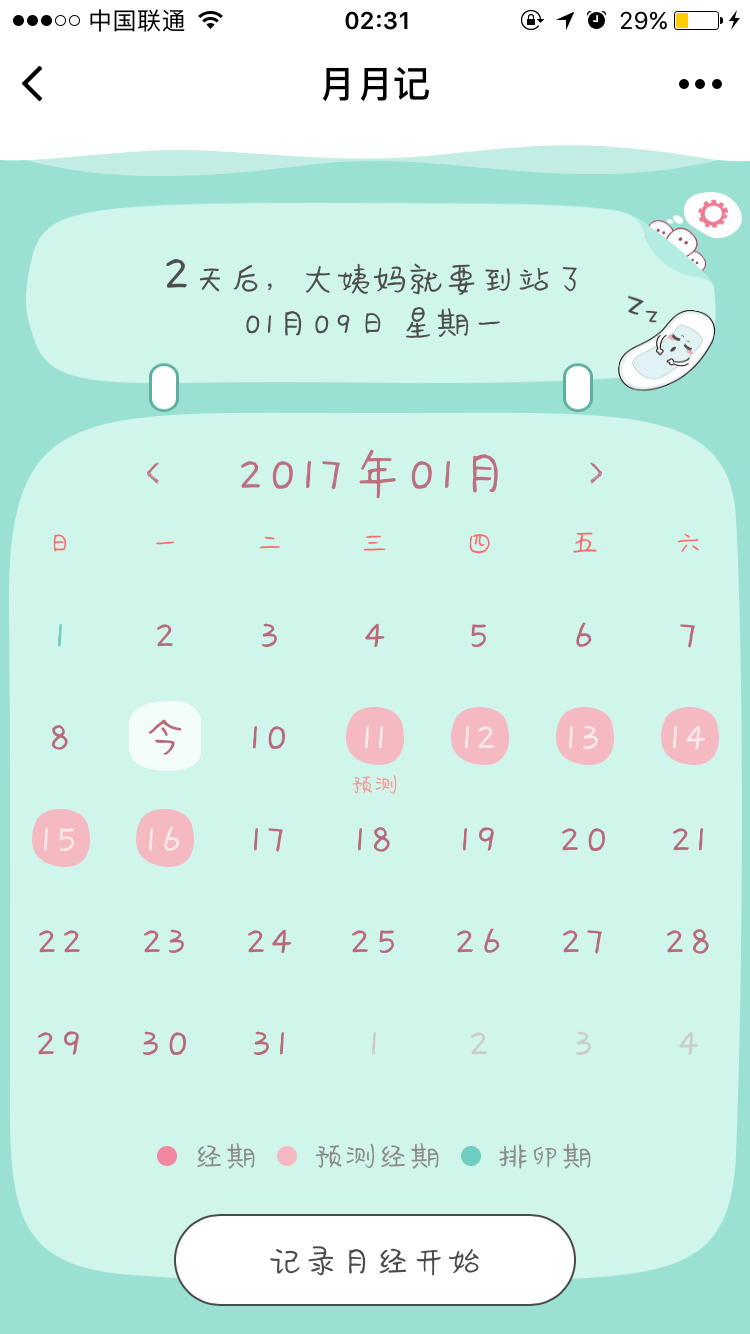 科学预测你的经期,从此告别大姨妈随时探访的尴尬。来月经,就用月月记~(产品截图部分是我们未来版本的预告图~敬请期待哦~)