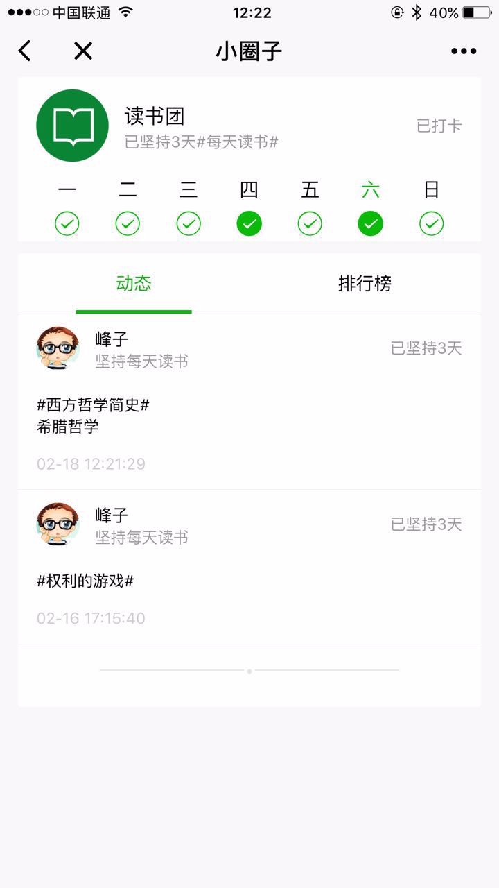 在这里,和你小伙伴,与你的小圈子一起早起跑步读书,一起打卡,一起成长。坚持打卡,分享给好友,记录我们每个人每天的坚持