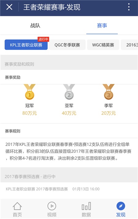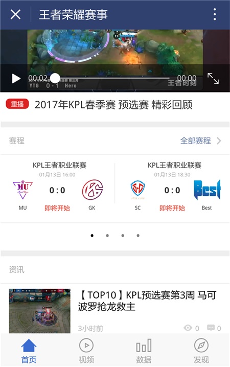 《王者荣耀》赛事中心微信小程序目前提供赛事直播、点播、官方资讯和战队信息等内容,玩家只需在微信-发现-小程序中点开“王者荣耀赛事”即可秒速开启观赛通道,启动速度比APP还快哦!同时,小程序中各项功能完善,内容充实,绝对是王者玩家必备小程序哦!