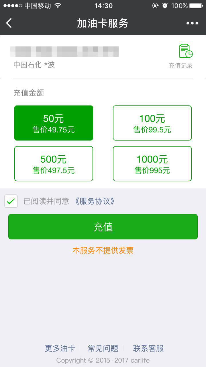 提供括中石化、中石油、中海油等加油卡充值服务、余额查询等服务。