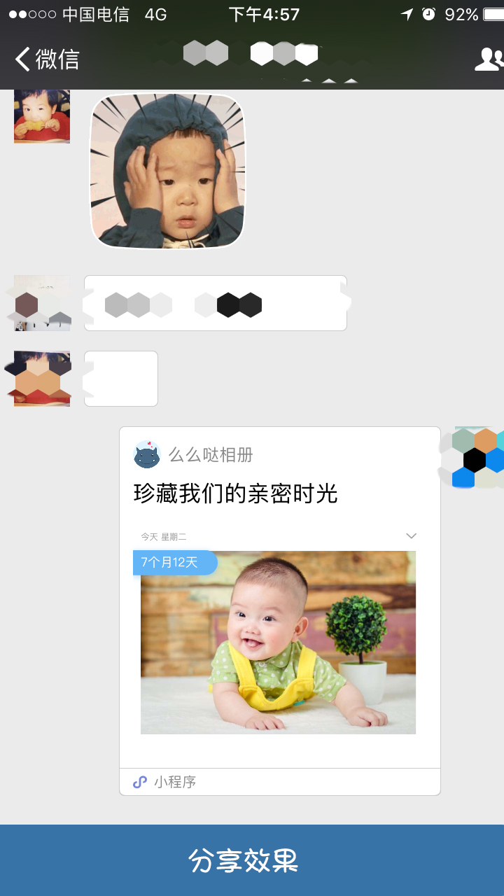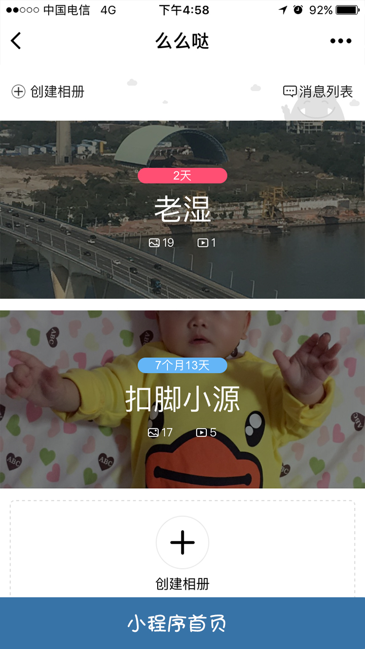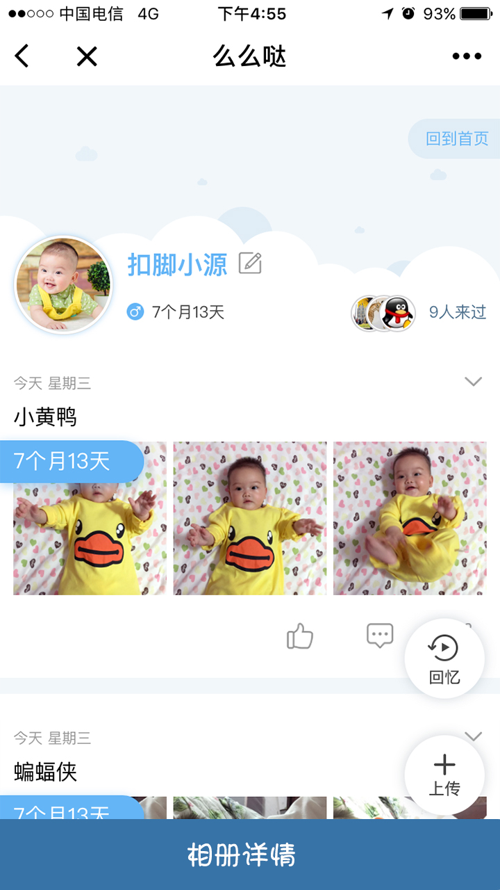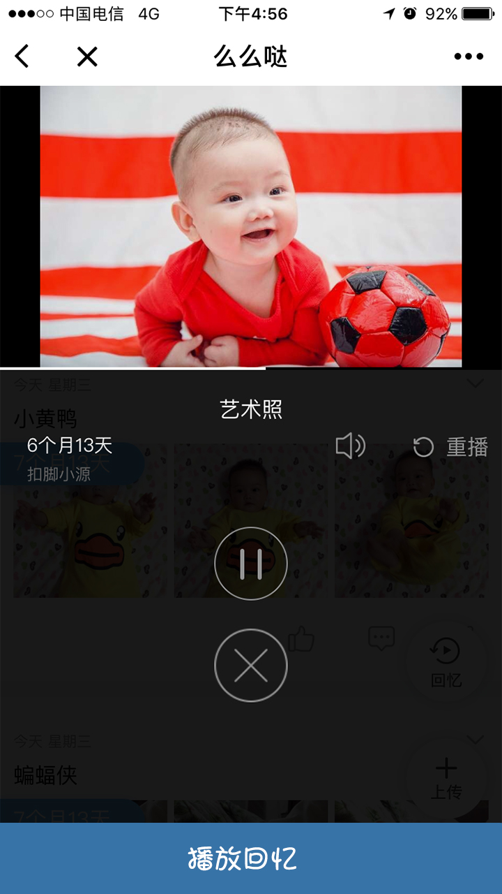 一个纪念时光的私密空间,管理你和恋人、孩子的照片、视频。其中【回忆】功能可自动将上传过的照片生成视频,配上音乐播放。