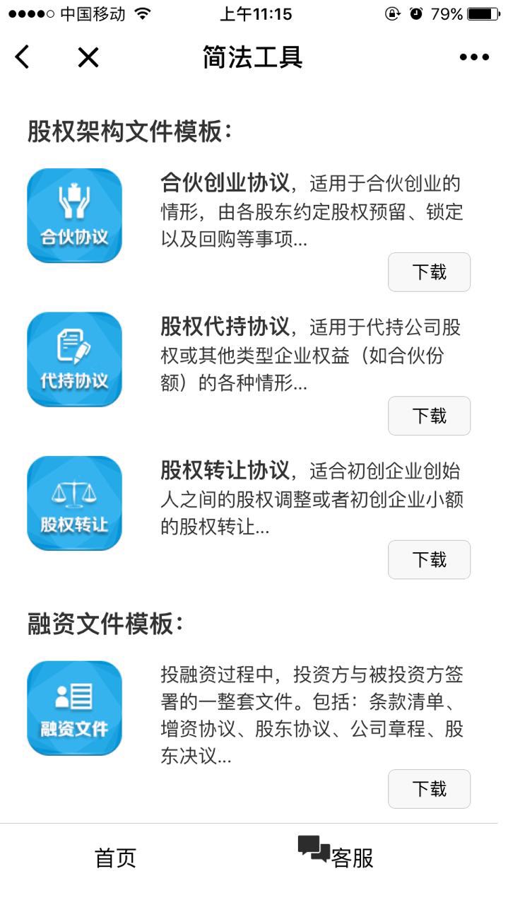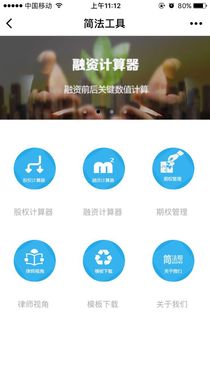简法工具包括公司股权分配计算的股权计算器、融资计算器、期权管理、常用法律文件模板下载以及律师视角文章观点等