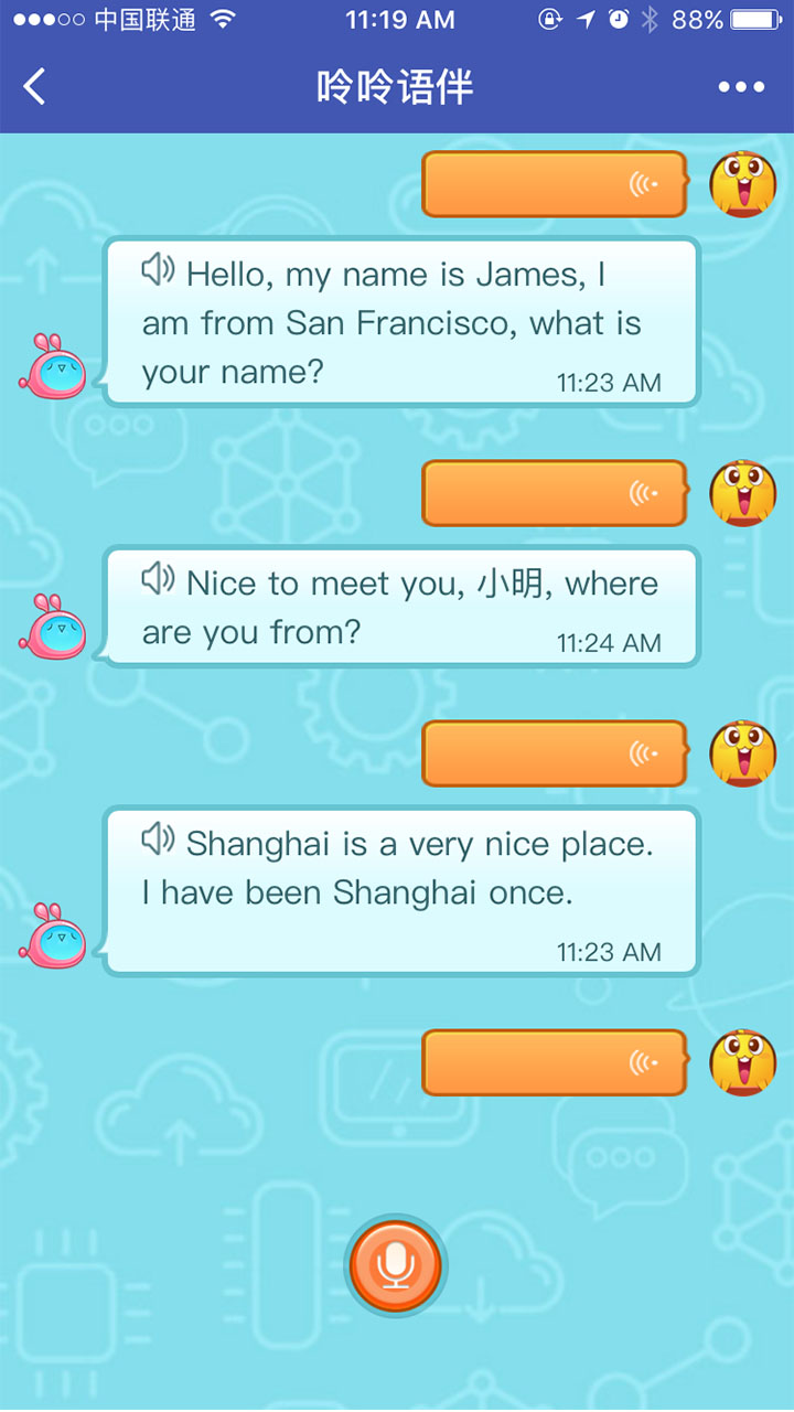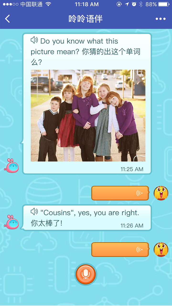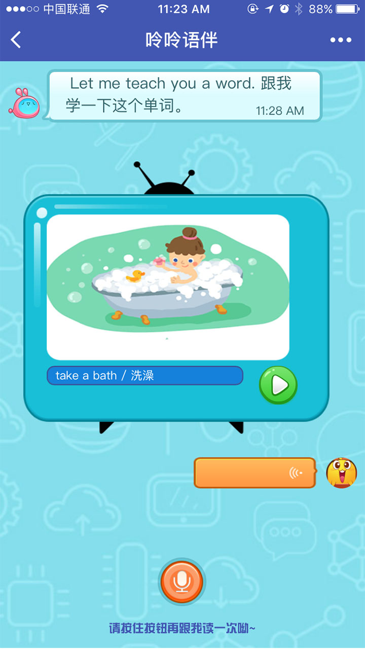 机器人帮孩子学英语?是的!呤呤英语机器人,和小朋友玩单词游戏、练习简单对话,还可以帮小朋友纠正发音哦!足不出户,找到随时和小朋友学英语的好伙伴,快来试试吧!