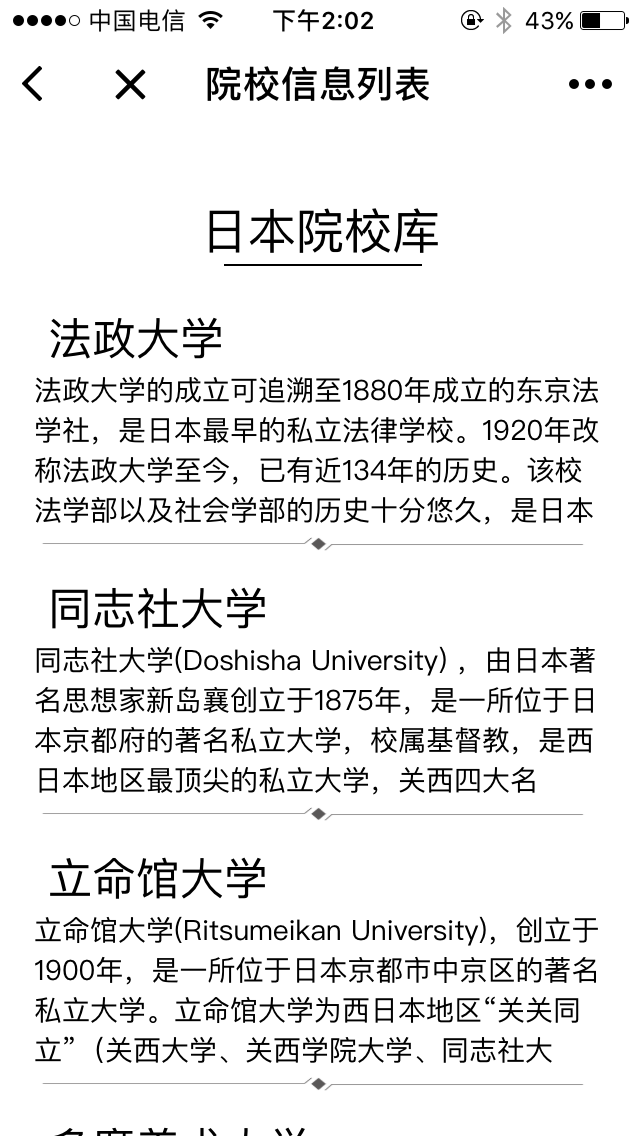 针对日本出国留学相关的资讯、进度等信息查询的小程序