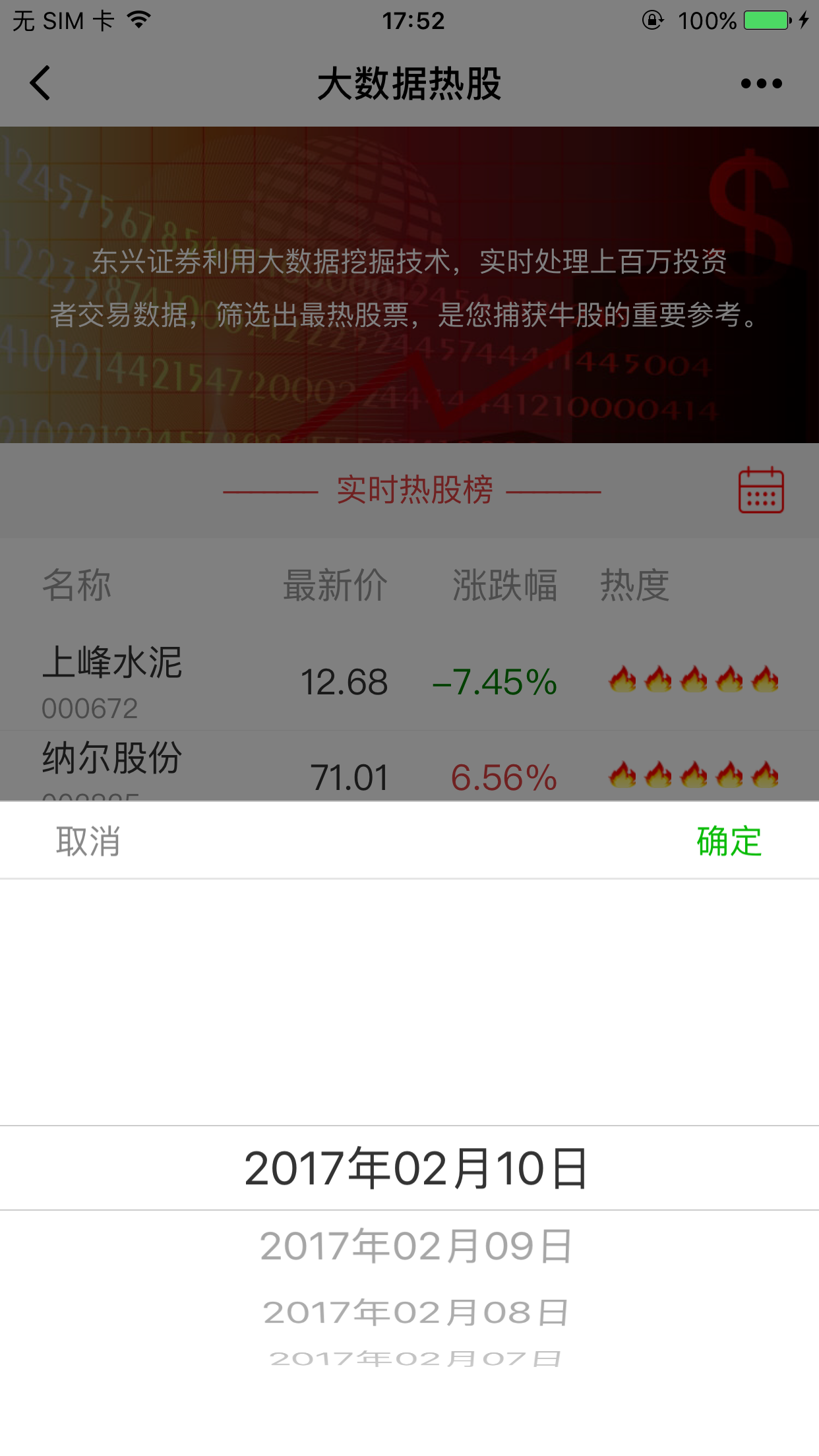 东兴证券利用大数据挖掘技术、实时处理上百万投资者交易数据、筛选出最热股票、是您捕获牛股的重要参考.