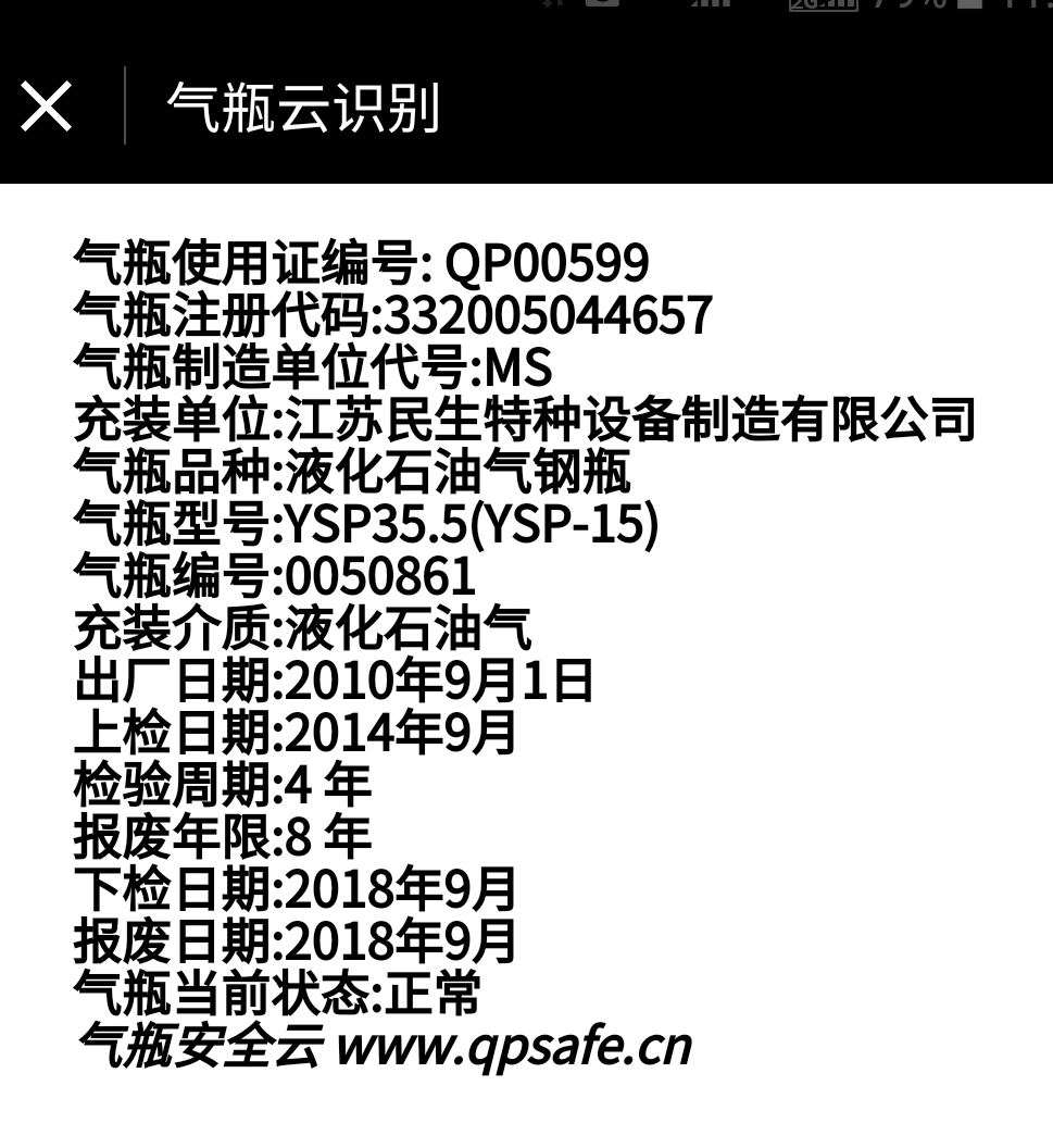 对气瓶二维条码进行识别,获取气瓶身份信息