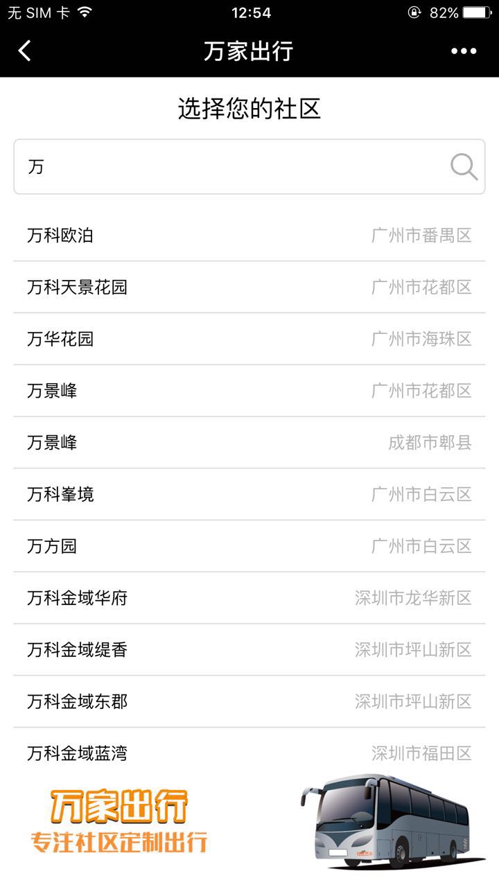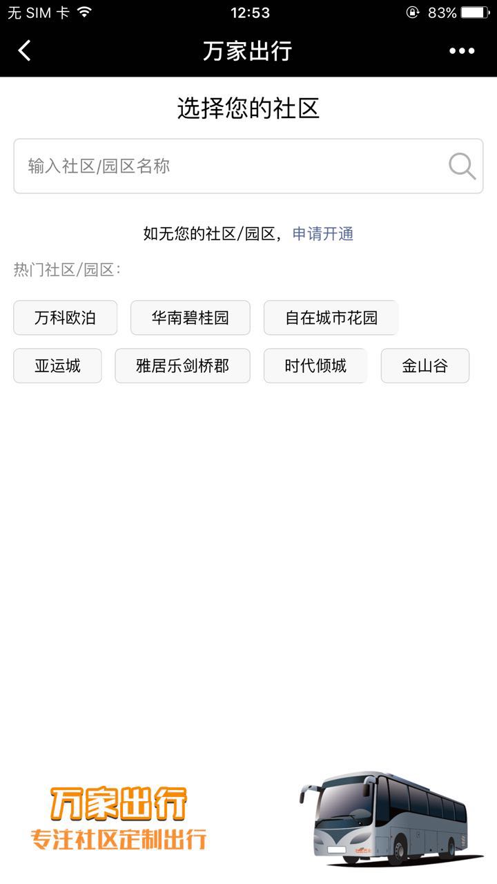 万家出行:专注社区定制出行!一人一座,舒适直达!服务包括:社区顺风车、社区巴士、园区巴士、城际巴士、周边游等出行服务!