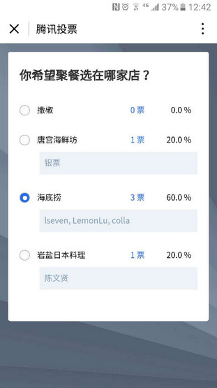 腾讯投票小程序能够用在不能直接做出决定的时候发起投票方法来决定!腾讯投票小程序可以发起单选投票,也能发起多选投票,创建投票成功之后就可以直接点击右上方的分享功能,把它分享到你的朋友圈或者是微信群和微信好友!非常的方便哦!