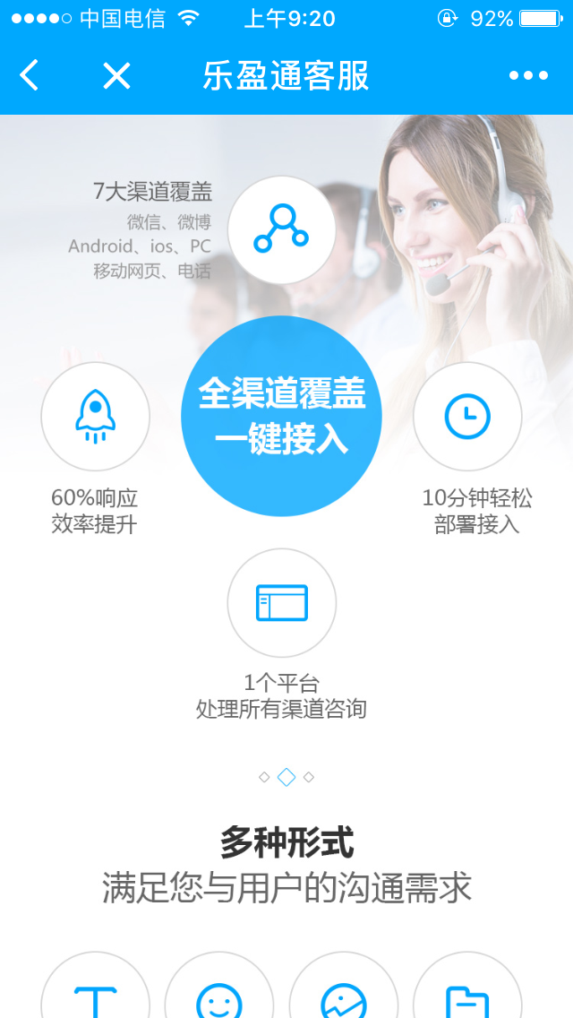 乐盈通是一款基于SaaS模式的客服管理系统,提供全渠道覆盖人工客服、7*24h机器客服、数据统计、智能工单、呼叫中心功能。