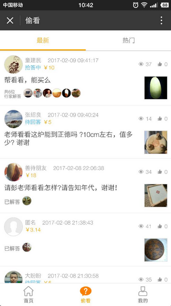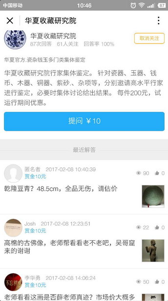 “行家看看”是一个艺术收藏品专业回答交流平台。当你遇到艺术品鉴赏、艺术品投资、鉴定估价等问题,都有行家在线为您答疑解惑。