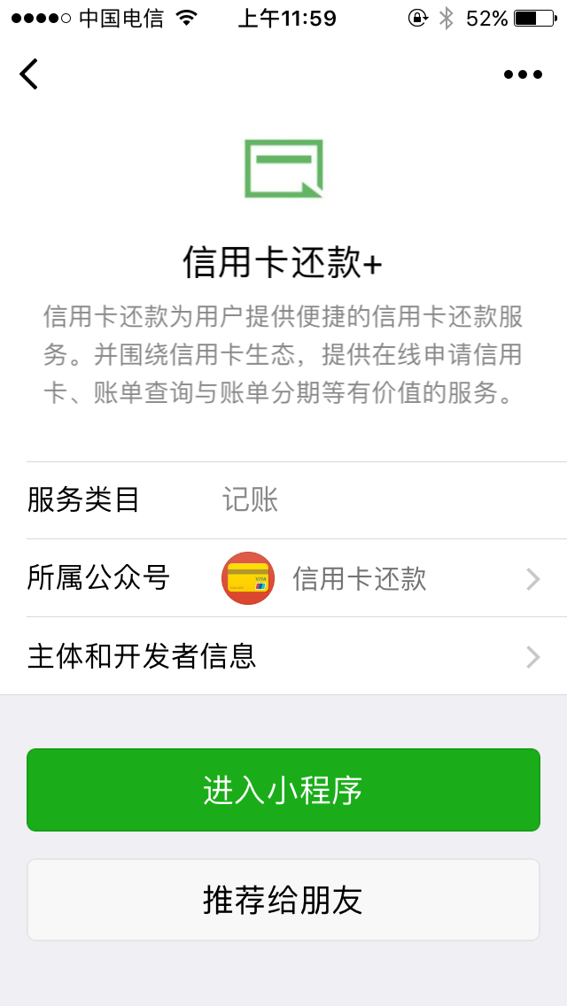 信用卡还款为用户提供便捷的信用卡还款服务。并围绕信用卡生态,提供在线申请信用卡、账单查询与账单分期等有价值的服务。
