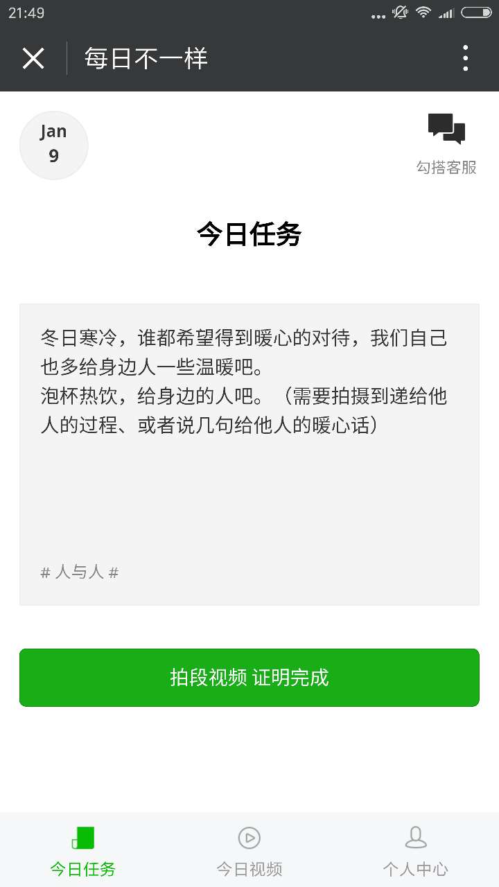 每日不一样的小任务,需在现实中完成并上传视频完成证据,审核后可得到奖励。摆脱庸常、自我发现、更可加入社群互动。