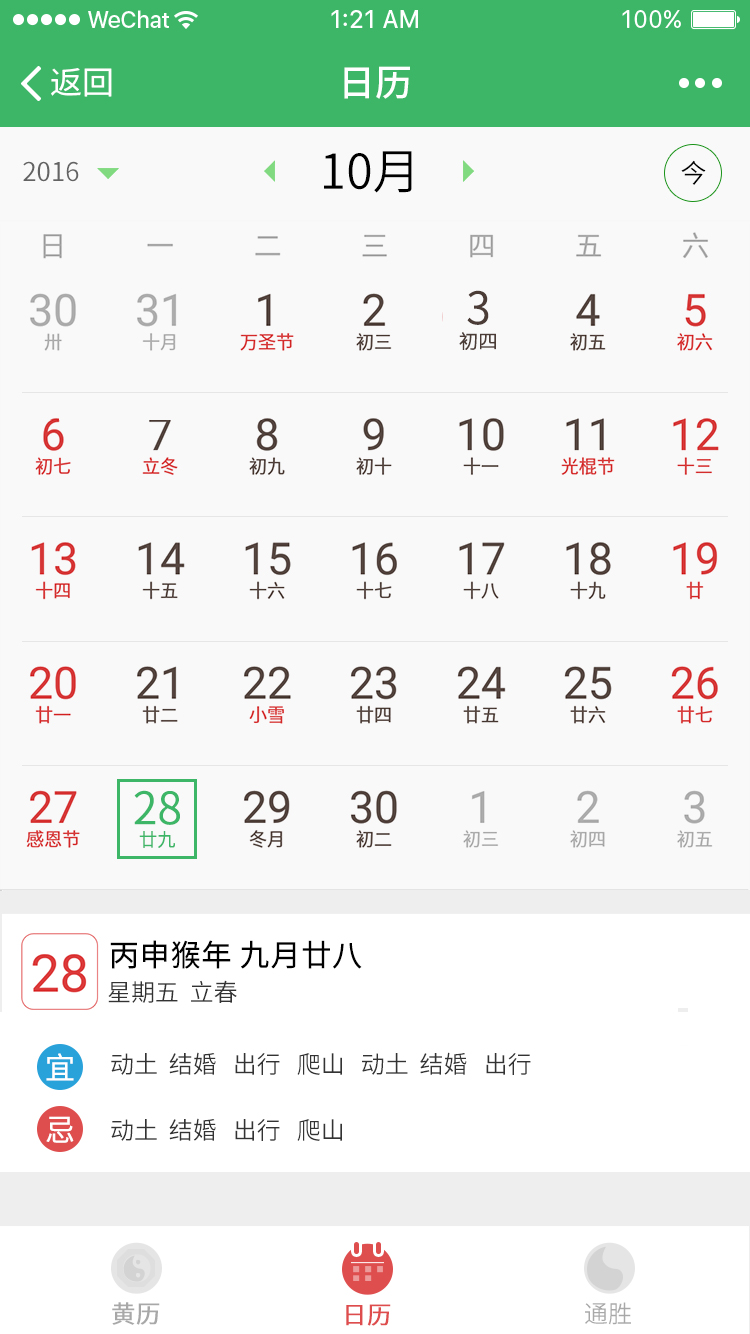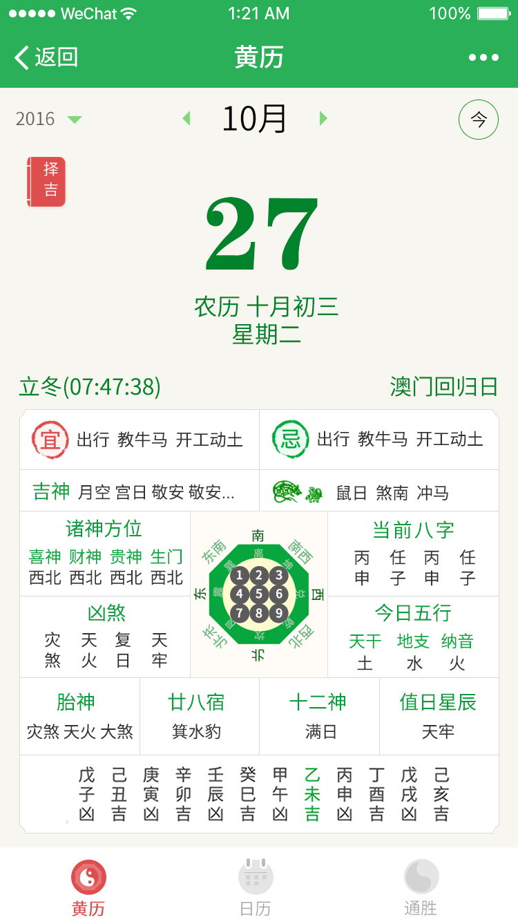 黄历万年历为您提供祈福、纳财、嫁娶等吉日查询服务。以及每日宜忌、诸神方位灯信息,并编制出了具有特色的通胜模式日历,以便查看。