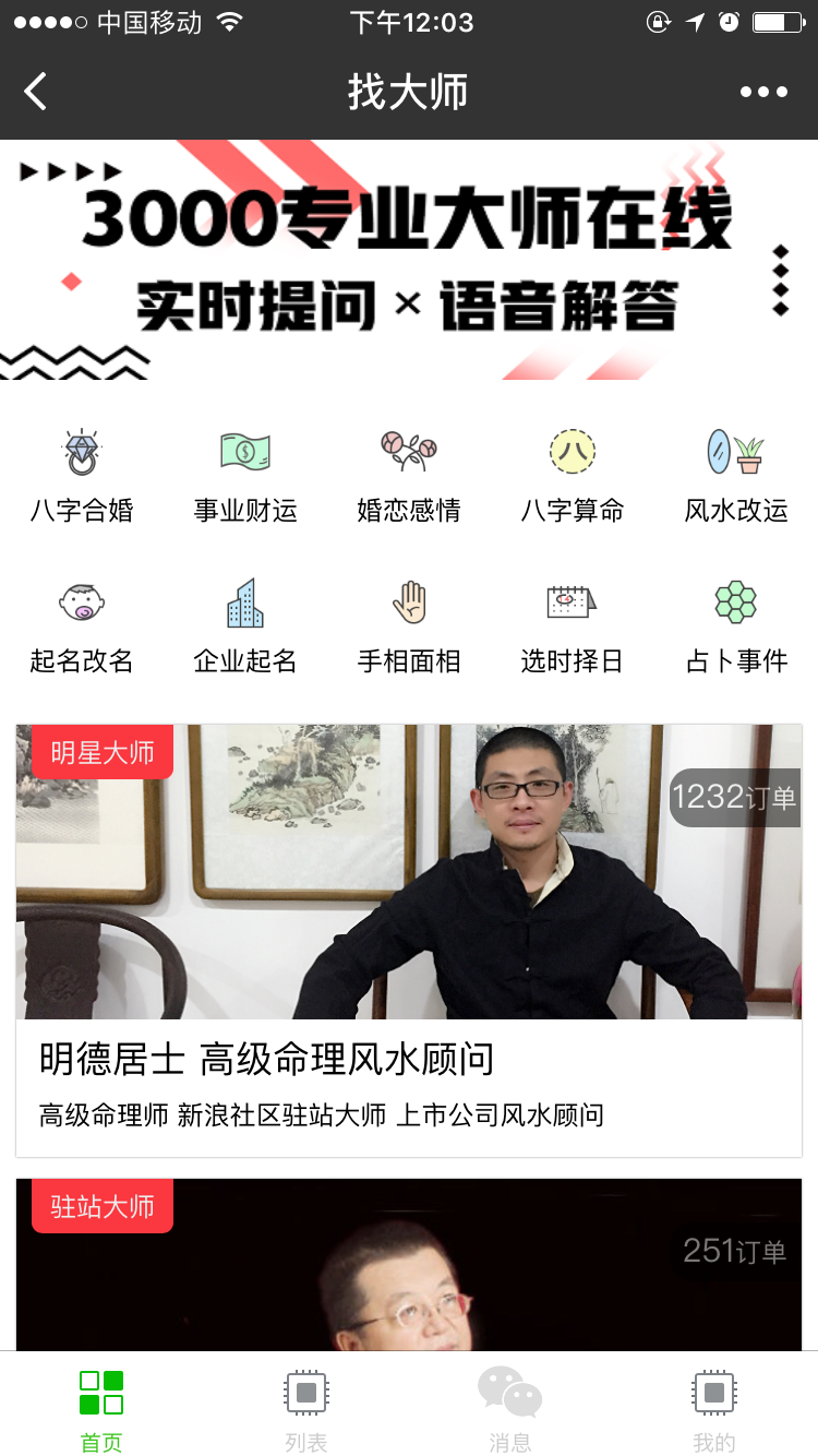 3000位易经大师在线占卜算命的平台。