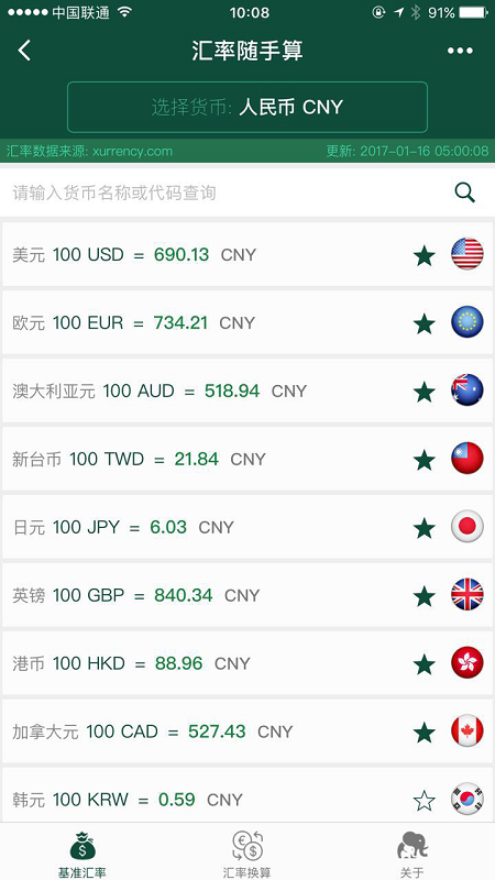 随时随地查询各国汇率,随时换算任意两种货币的兑换。
