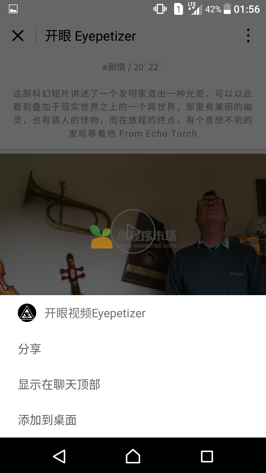 微信扫描上方开眼视频Eyepetizer二维码即可打开开眼视频Eyepetizer小程序,无需安装,如果喜欢请记得分享哦!