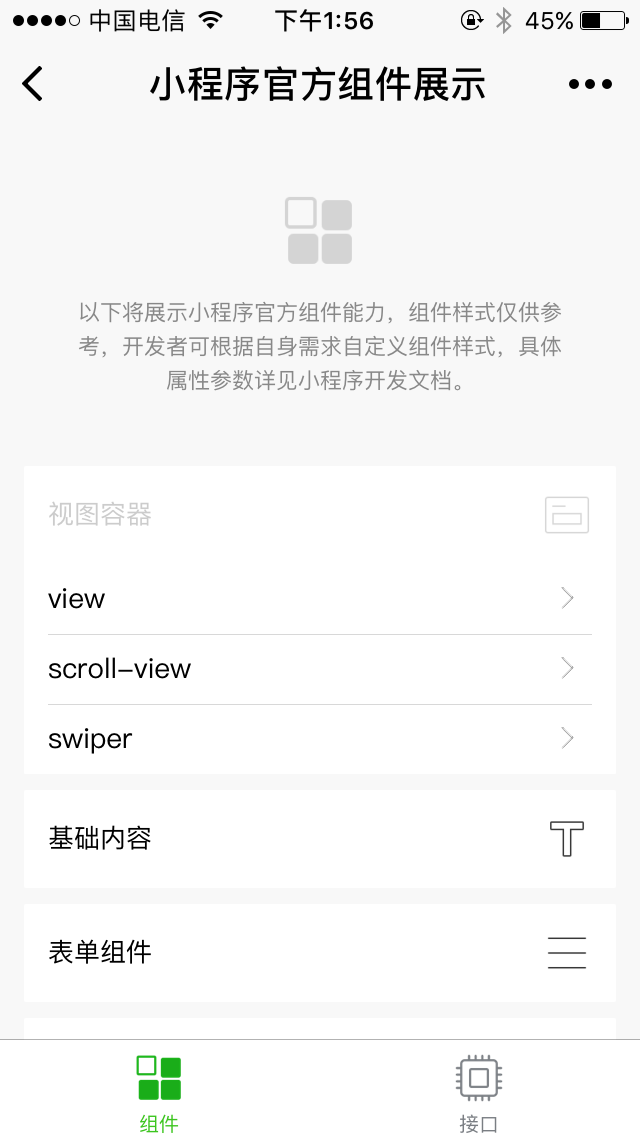 小程序官方示例Demo,就当前已支持的接口能力及组件进行展示