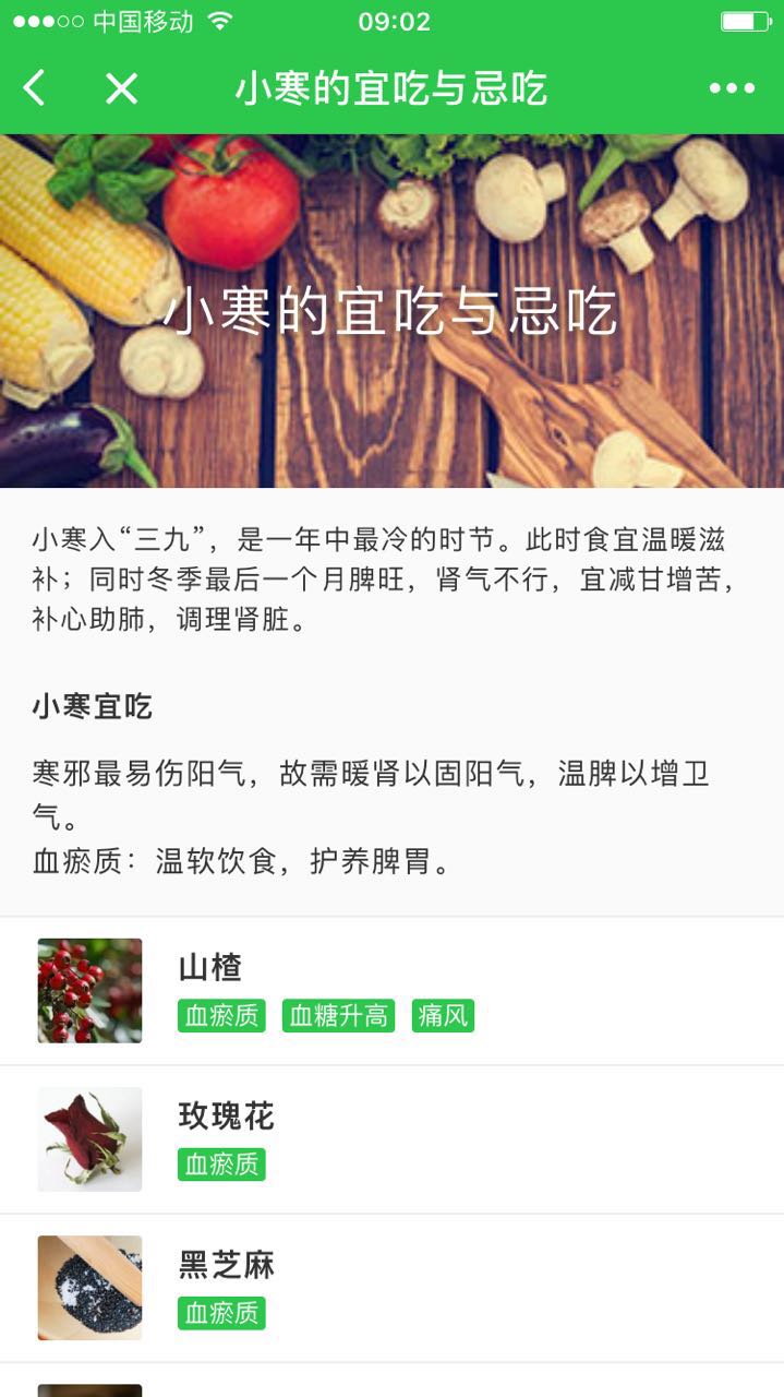 个性化推荐当令食物。根据身体状况,包含体质,慢性病,小症状,结合不同节气的智能推荐系统。