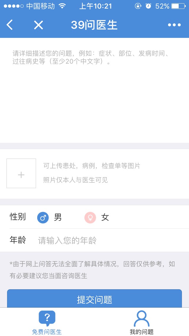 39问医生+是一款在线健康咨询小程序。汇聚全国各大医院的万名医生,依据丰富的临床经验与专业的医疗知识在线服务患者,时时刻刻解答您的健康问题。